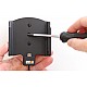 De houder is uitgerust met een tilt-swivel, waarmee je de hoek eenvoudig kunt aanpassen voor een beter zicht of kunt schakelen tussen staande en liggende modus. De houder kantelt 20° en draait 360°, wat zorgt voor optimale flexibiliteit. De montageplaat van 42x50 mm is voorzien van voorgeboorde AMPS-gaten en gecentreerde gaten van 2,5 mm, en is gemaakt van hoogwaardig zwart ABS/Acetal-plastic.